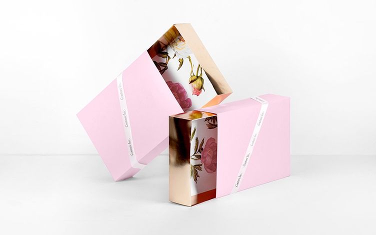 當(dāng)創(chuàng)建包裝時(shí),利用你能利用的空間。上圖盒子包裝的內(nèi)部使用了漂亮的花卉圖案。這種設(shè)計(jì)讓盒子看起來更高檔,這反襯出內(nèi)部的產(chǎn)品看起來更高檔。